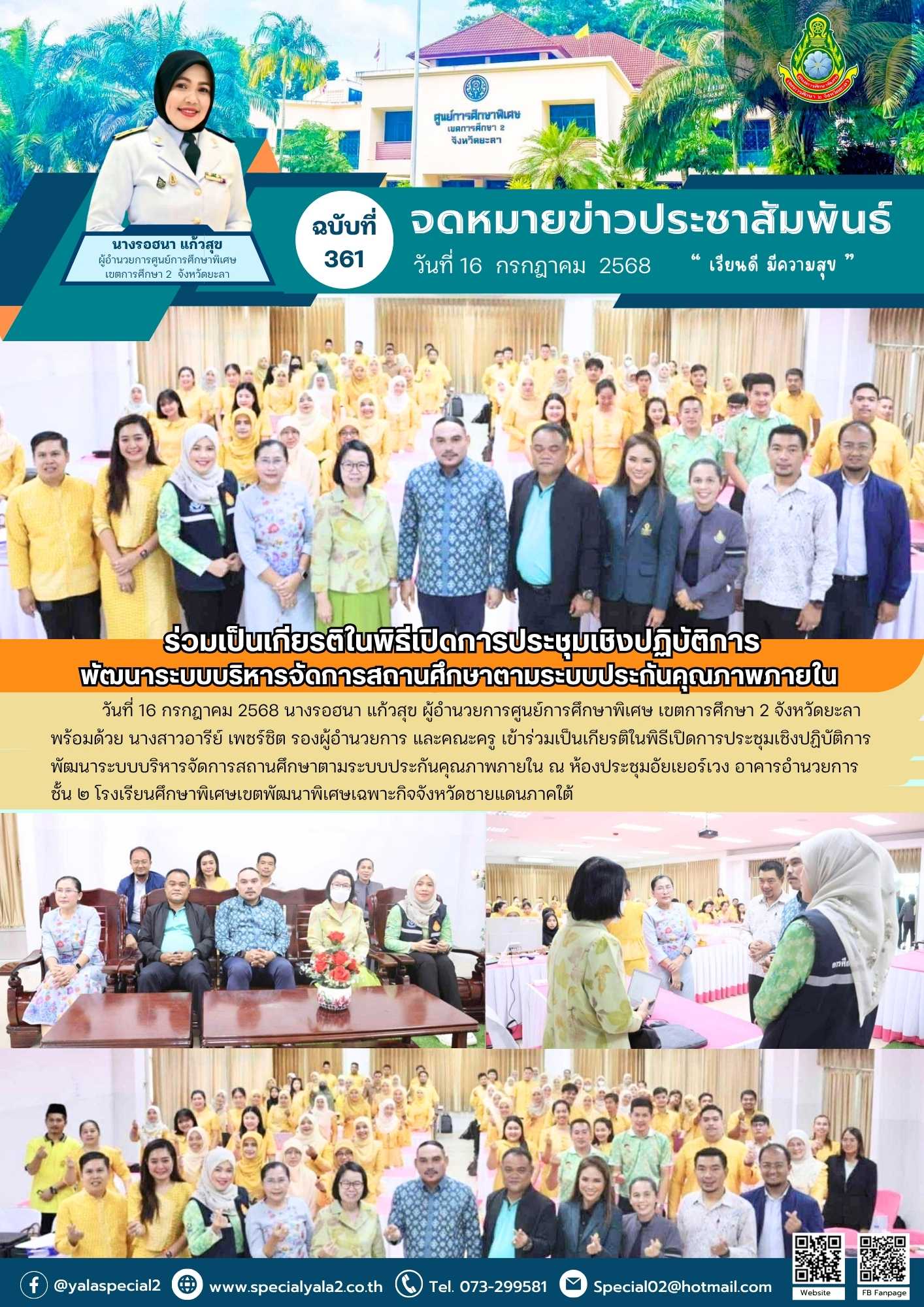 ร่วมเป็นเกียรติในพิธีเปิดการประชุมเชิงปฏิบัติการพัฒนาระบบบริหารจัดการสถานศึกษาตามระบบประกันคุณภาพภายใน