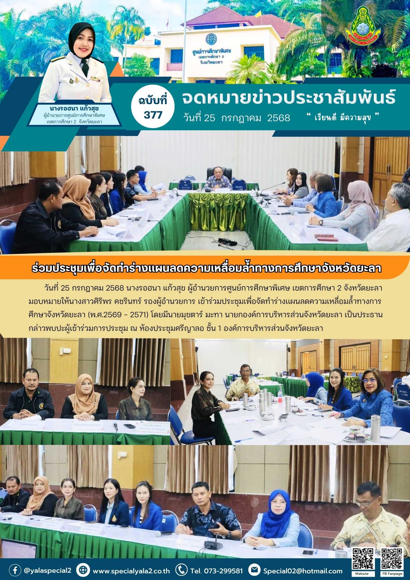 ร่วมประชุมเพื่อจัดทำร่างเเผนลดความเหลื่อมล้ำทางการศึกษาจังหวัดยะลา