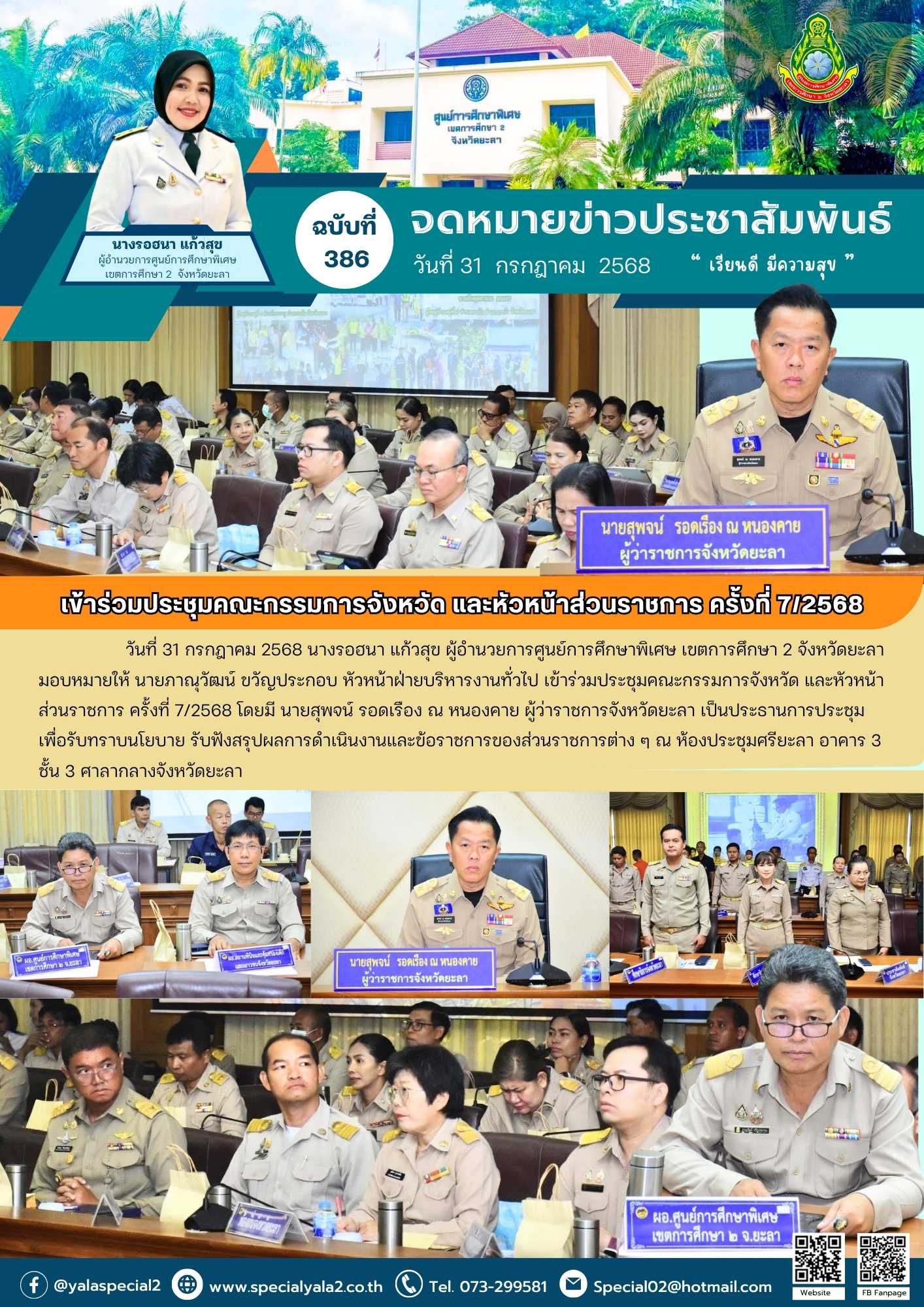 เข้าร่วมประชุมคณะกรรมการจังหวัด และหัวหน้าส่วนราชการ ครั้งที่ 7/2568